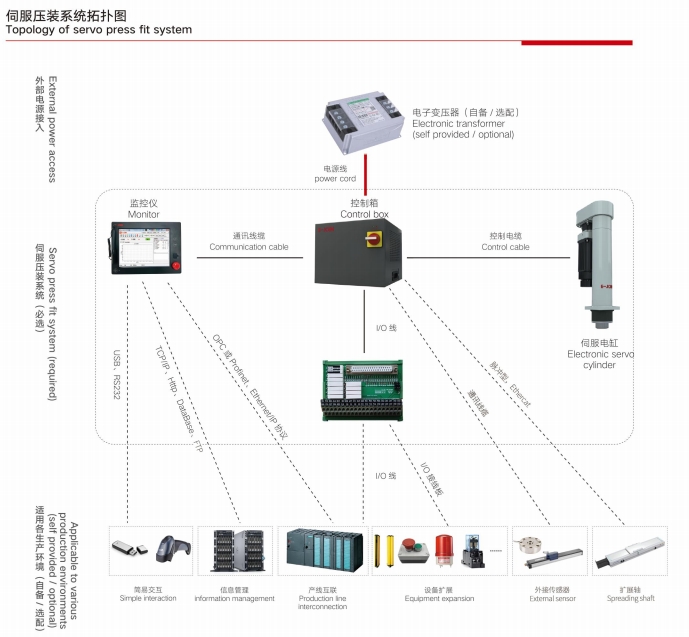 易久EPS 系列伺服壓機由電動伺服壓裝缸、控制器和人機交互模塊三部分組成,采用模塊化閉環伺服控制系統,實現力與位移時間數據實時采集和分析,可進行力與位移監控、力與時間監控;具有壓力控制、位移控制、速度控制,適用于對壓裝過程有嚴格要求的所有場合,是實現“數字化裝配”的核心部件。本產品適用范圍廣泛,無論是半自動的工作站還是全自動裝配線都能方便的集成 EPS 伺服壓機。