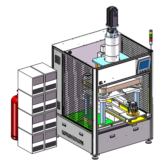 案例2:國內要做中國博世的電動汽車核心零部件供應商的電機產品。項目要求疊片裝配進行位移和力的過程監控,通過伺服壓機的力和位移的精確控制,保證了電機疊片的壓裝厚度要求和輸出力的要求,同時在裝配設備中集成激光焊接機,伺服壓機集成系統的抗干擾設計保證了設備的可靠運行。