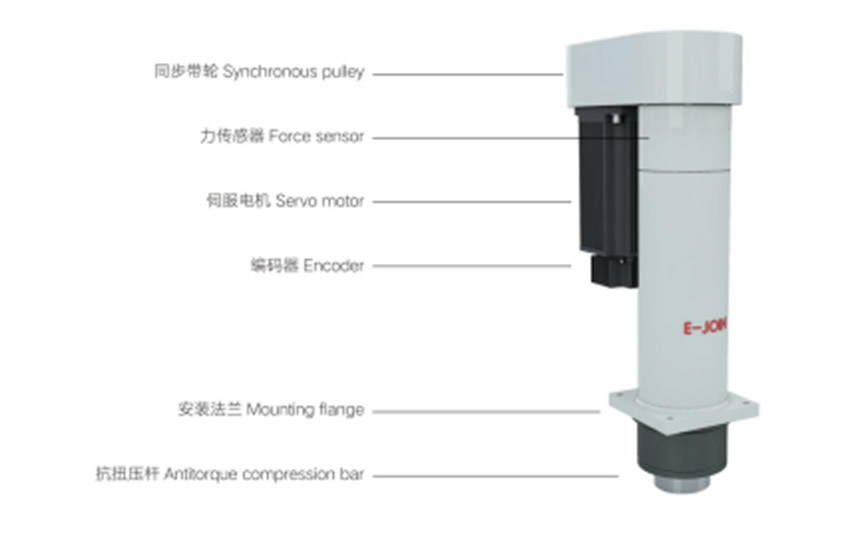 模塊化設計,本系統由伺服電缸、E-PreSs 工業軟件、控制箱、監控儀和線纜模塊五部分織成。控制箱實現同服電知的運行控制和壓力數據采集,E-Press 工業軟件內置標準數據庫,完成力位移的曲線實時顯示、商口判斷和包絡線檢測。測量數據和裝配結果可以與PLC、服務器交互,滿足過程數據的追湖要求。易久伺服壓裝系統可以非常靈活的集成在各種控制系統內,一臺監控儀可以監控多套伺服電缸同時工作。